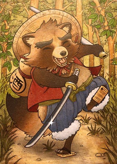 The attacks of his adversaries quickly turn sour as he feints and dances with an unconventional step. To flow like water is this tanuki’s philosophy.